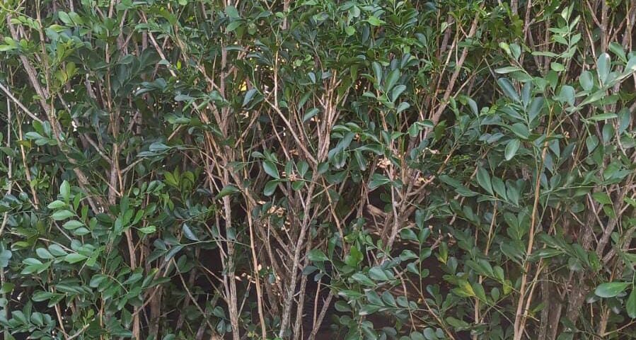 Muito utilizada para a formação de cercas-vivas, a murta-de-cheiro apresenta ramagem lenhosa e bastante ramificada.